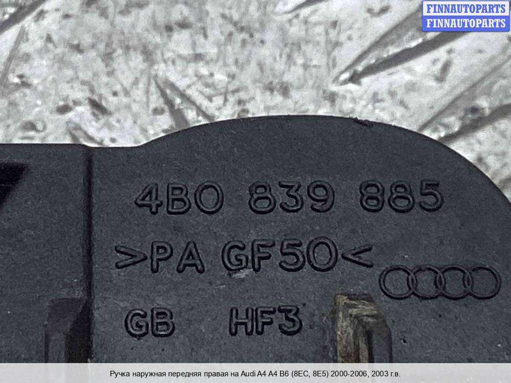 | Ручка двери наружная передняя правая | Audi A4 B6 (2001-2004) |